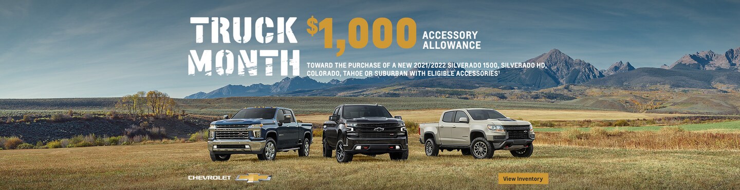 *$1,000 ACCESSORY ALLOWANCE TOWARD THE PURCHASE OF A NEW 2021 or 2022 SILVERADO 1500, SILVERADO HD, COLORADO, TAHOE or SUBURBAN, WITH ELIGIBLE GM OR ASSOCIATED ACCESSORIES