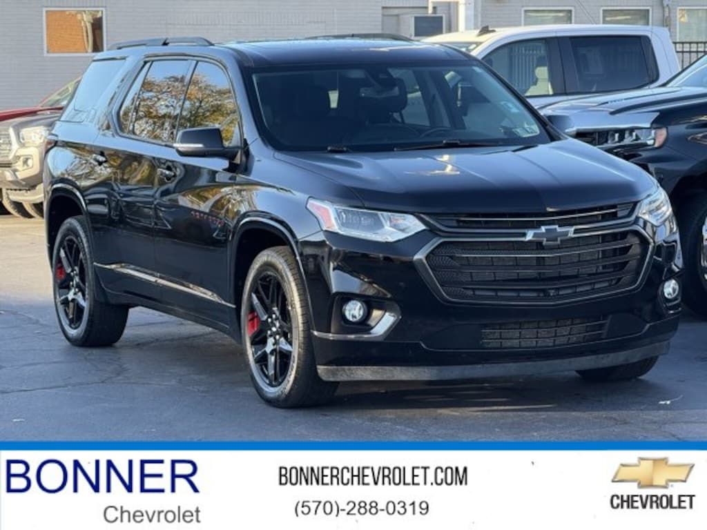 Bonner Chevrolet is proud to present you with another True Market Priced Pre-Owned Vehicle. This 2021 Chevrolet Traverse Premier is loaded with the following Factory Options: Traverse Premier, 4D Sport Utility, 3.6L V6 SIDI VVT, 9-Speed Automatic, AWD, Mosaic Black Metallic, and Jet Black Leather Floor Liner Package (LPO) (1st & 2nd Row All-Weather Floor Liner (LPO), 3rd Row All-Weather Floor Liner (LPO), and Integrated Cargo Liner (LPO)), Preferred Equipment Group 1LZ, Redline Edition (Black Door Handles, Dual SkyScape 2-Panel Power Sunroof, Ornamentation, and Wheels: 20 Gloss Black Painted Alum w/Red Stripes), Traverse Premier, 4D Sport Utility, 3.6L V6 SIDI VVT, 9-Speed Automatic, AWD, Mosaic Black Metallic, Jet Black Leather, 10 Speakers, 3.49 Axle Ratio, 3rd row seats: split-bench, 4-Wheel Disc Brakes, 7-Passenger Seating (2-2-3 Seating Configuration), ABS brakes, Air Conditioning, Alloy wheels, AM/FM radio: SiriusXM with 360L, Apple CarPlay/Android Auto, Auto High-beam Headlights, Auto-dimming door mirrors, Auto-dimming Rear-View mirror, Automatic temperature control, Black Roof Rails, Bose Premium 10-Speaker Audio System Feature, Brake assist, Bumpers: body-color, Compass, Delay-off headlights, Driver door bin, Driver vanity mirror, Dual front impact airbags, Dual front side impact airbags, Electronic Stability Control, Emergency communication system: OnStar and Chevrolet connected services capable, Four wheel independent suspension, Front anti-roll bar, Front Bucket Seats, Front Center Armrest, Front dual zone A/C, Front fog lights, Front reading lights, Fully automatic headlights, Garage door transmitter, Heated door mirrors, Heated front seats, Heated rear seats, Heated steering wheel, Illuminated entry, Leather steering wheel, Low tire pressure warning, Memory seat, Navigation System, Occupant sensing airbag, Outside temperature display, Overhead airbag, Overhead console, Panic alarm, Passenger door bin, Passenger vanity mirror, Perforated Leather-Appointed Seat Trim, Power door mirrors, Power driver seat, Power Liftgate, Power passenger seat, Power steering, Power windows, Premium audio system: Chevrolet MyLink, Radio data system, Radio: Chevrolet Infotainment 3 Premium System, Rear air conditioning, Rear anti-roll bar, Rear reading lights, Rear window defroster, Rear window wiper, Remote keyless entry, Roof rack: rails only, Security system, SiriusXM w/360L, Speed control, Speed-sensing steering, Spoiler, Steering wheel memory, Steering wheel mounted audio controls, Tachometer, Telescoping steering wheel, Tilt steering wheel, Traction control, Trip computer, Turn signal indicator mirrors, Variably intermittent wipers, Ventilated front seats, Voltmeter, and Wheels: 20 Argent Metallic Machine Faced Aluminum!!