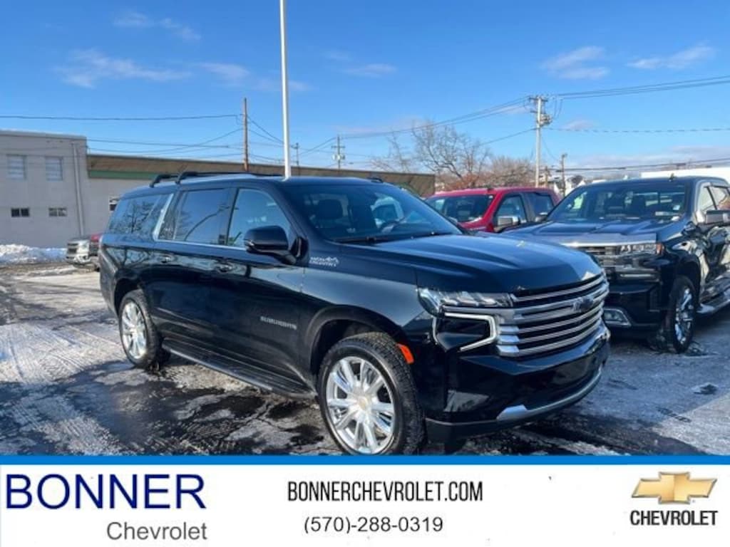 Bonner Chevrolet is proud to present you with another True Market Priced Pre-Owned Vehicle. This 2022 Chevrolet Suburban High Country is loaded with the following Factory Options: Advanced Trailering Package (Hitch Guidance w/Hitch View, Integrated Trailer Brake Controller, Smart Trailer Integration Indicator, and Trailer Side Blind Zone Alert), Max Trailering Package (Extra Capacity Cooling System), Preferred Equipment Group 3LZ (15 Diagonal Multi-Color Head-Up Display, 1st & 2nd Row Color-Keyed Carpeted Floor Mats, 2-Speed Active Electronic AutoTrac Transfer Case, 3rd Row 60/40 Power-Folding Split-Bench, Automatic Stop/Start, Bose 10-Speaker Surround w/CenterPoint, Bright Front & Rear Door Sill Plates, Chrome Door Handles w/Body-Color Strip, Color-Keyed Carpeting Floor Covering, Driver & Front Outboard Passenger Airbags, Dual Exhaust System, Enhanced Driver Information Center, Floor Console, Front & Rear Park Assist, Hands-Free Rear Power Programmable Liftgate, HD Surround Vision, Heated & Ventilated Driver & Front Passenger Seats, Heated 2nd Row Outboard Seats, Heated Driver & Front Passenger Seats, Heated Steering Wheel, Hill Descent Control, Infotainment Display, Inside Rearview Auto-Dimming Rear Camera Mirror, Lane Change Alert w/Side Blind Zone Alert, Leather-Wrapped Steering Wheel, LED Daytime Running Lamps, Memory Settings, Outside Heated Power-Adjustable Mirrors, Power Release 2nd Row Bucket Seats, Power Tilt & Telescopic Steering Column, Rear Camera Mirror Washer, Rear Cross Traffic Alert, Rear Pedestrian Alert, Remote Start, Safety Alert Seat, SiriusXM Radio w/360L, Start/Stop System Disable Button, Universal Home Remote, and Wireless Charging), 10 Speakers, 3.23 Rear Axle Ratio, 3rd row seats: split-bench, 4-Wheel Disc Brakes, ABS brakes, Adaptive suspension, Air Conditioning, Alloy wheels, AM/FM radio: SiriusXM with 360L, Apple CarPlay/Android Auto, Auto High-beam Headlights, Auto-dimming door mirrors, Auto-dimming Rear-View mirror, Auto-leveling suspension, Automatic temperature control, Black Illuminated Front Bowtie Emblem (LPO), Black Roof Rack Cross Rails, Brake assist, Bumpers: body-color, Compass, Delay-off headlights, Driver door bin, Driver vanity mirror, Dual front impact airbags, Dual front side impact airbags, Dual-Pane Power Panoramic Sunroof, Electronic Stability Control, Emergency communication system: OnStar and Chevrolet connected services capable, Four wheel independent suspension, Front anti-roll bar, Front Bucket Seats, Front Center Armrest, Front dual zone A/C, Front reading lights, Fully automatic headlights, Garage door transmitter, Heads-Up Display, Heated door mirrors, Heated front seats, Heated rear seats, Heated steering wheel, Illuminated entry, Leather steering wheel, Low tire pressure warning, Magnetic Ride Control Suspension, Memory seat, Navigation System, Not Equipped w/4-Way Driver & Fr Pass Pwr Lumbar, Not Equipped w/Steering Column Lock, Occupant sensing airbag, Outside temperature display, Overhead airbag, Overhead console, Panic alarm, Passenger door bin, Passenger vanity mirror, Perforated Leather Seating Surfaces, Power door mirrors, Power driver seat, Power Liftgate, Power passenger seat, Power steering, Power windows, Premium audio system: Chevrolet Infotainment 3 Premium, Radio: Chevrolet Infotainment 3 Premium System, Rain sensing wipers, Rear air conditioning, Rear anti-roll bar, Rear reading lights, Rear window defroster, Rear window wiper, Remote keyless entry, Roof rack: rails only, Security system, Speed control, Speed-sensing steering, Split folding rear seat, Spoiler, Steering wheel memory, Steering wheel mounted audio controls, Tachometer, Telescoping steering wheel, Tilt steering wheel, Traction control, Trip computer, Turn signal indicator mirrors, Variably intermittent wipers, Ventilated front seats, Voltmeter, Wheel Locks (Set of 4) (LPO), and Wheels: 22 x