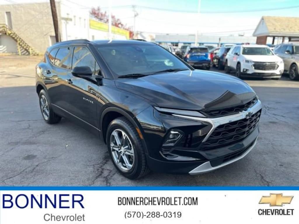 Bonner Chevrolet is proud to present you with another True Market Priced Pre-Owned Vehicle. This 2023 Chevrolet Blazer LT is loaded with the following Factory Options: Blazer LT, 4D Sport Utility, 2.0L Turbocharged, 9-Speed Automatic with Overdrive, AWD, Black, and Jet Black Cloth Convenience Package (Adaptive Cruise Control, Black Roof-Mounted Side Rails, Enhanced Automatic Emergency Braking, Heated Driver & Front Passenger Seats, Inside Rear-View Auto-Dimming Mirror, Rear Power Programmable Liftgate, Universal Home Remote, and Wireless Charging), Floor Liner Package (LPO) (1st & 2nd Row All-Weather Floor Liners (LPO) and Integrated Cargo Liner (LPO)), Preferred Equipment Group 2LT, Blazer LT, 4D Sport Utility, 2.0L Turbocharged, 9-Speed Automatic with Overdrive, AWD, Black, Jet Black Cloth, 170 Amp Alternator, 3.47 Final Drive Axle Ratio, 4-Way Manual Front Passenger Seat Adjuster, 4-Wheel Disc Brakes, 6 Speakers, 6-Speaker Audio System Feature, 8-Way Power Driver Seat Adjuster, ABS brakes, Air Conditioning, Alloy wheels, AM/FM radio: SiriusXM with 360L, Apple CarPlay/Android Auto, Auto High-beam Headlights, Automatic temperature control, Brake assist, Bumpers: body-color, Child-Seat-Sensing Airbag, Compass, Delay-off headlights, Driver door bin, Driver vanity mirror, Dual front impact airbags, Dual front side impact airbags, Electronic Stability Control, Emergency communication system: OnStar and Chevrolet connected services capable, Four wheel independent suspension, Front anti-roll bar, Front Bucket Seats, Front Center Armrest, Front dual zone A/C, Front reading lights, Fully automatic headlights, Heated door mirrors, Illuminated entry, Knee airbag, Leather Shift Knob, Low tire pressure warning, Occupant sensing airbag, Outside temperature display, Overhead airbag, Overhead console, Panic alarm, Passenger door bin, Passenger vanity mirror, Power door mirrors, Power Driver Lumbar Control, Power driver seat, Power steering, Power windows, Premium audio system: Chevrolet Infotainment 3 Plus, Premium Cloth Seat Trim, Radio data system, Radio: Chevrolet Infotainment 3 Plus System, Rear anti-roll bar, Rear reading lights, Rear seat center armrest, Rear window defroster, Rear window wiper, Remote keyless entry, Ride & Handling Suspension, Security system, SiriusXM w/360L, Speed control, Speed-sensing steering, Split folding rear seat, Spoiler, Steering wheel mounted audio controls, Tachometer, Telescoping steering wheel, Tilt steering wheel, Traction control, Trip computer, Variably intermittent wipers, Voltmeter, and Wheels: 18 Grazen Metallic Aluminum!!