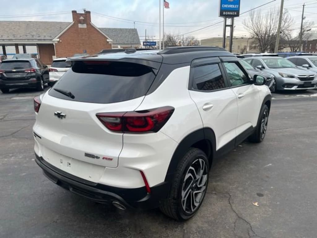 Bonner Chevrolet is proud to present you with another True Market Priced Pre-Owned Vehicle. This 2025 Chevrolet TrailBlazer RS is loaded with the following Factory Options: TrailBlazer RS, 4D Sport Utility, 1.3L Ecotec Turbo DOHC SIDI w/VVT, 9-Speed Automatic, AWD, Iridescent Pearl Tricoat, and Jet Black With Red Accents Adaptive Cruise and Sound Package (Adaptive Cruise Control and Bose Premium 7-Speaker Audio System Feature), Convenience Package (1 Type-An and 1 Type-C USB Charging-Only Ports, 120-Volt Power Outlet, Cabin Humidity Sensor, Driver and Front Passenger Illuminated Vanity Mirrors, Hands Free Power Programmable Liftgate, Inside Rear-View Auto-Dimming Mirror, Single-Zone Automatic Climate Control, and Wireless Charging), Driver Confidence Package (Lane Change Alert with Side Blind Zone Alert, Rear Cross Traffic Alert, and Rear Park Assist), Preferred Equipment Group 1RS, TrailBlazer RS, 4D Sport Utility, 1.3L Ecotec Turbo DOHC SIDI w/VVT, 9-Speed Automatic, AWD, Iridescent Pearl Tricoat, Jet Black With Red Accents, 1 Type-An and 1 Type-C USB Ports, 2-Way Power Driver Lumbar Seat Adjuster, 3.17 Final Drive Axle Ratio, 4-Way Manual Front Passenger Seat Adjuster, 4-Wheel Disc Brakes, 6 Speakers, 6-Speaker Audio System Feature with Amplifier, 8-Way Power Driver Seat Adjuster, ABS brakes, Air Conditioning, Alloy wheels, AM/FM radio: SiriusXM, Auto High-beam Headlights, Brake assist, Bumpers: body-color, Compass, Delay-off headlights, Driver door bin, Driver vanity mirror, Dual front impact airbags, Dual front side impact airbags, Electronic Stability Control, Emergency communication system: OnStar and Chevrolet connected services capable, Evotex Seat Trim, Exterior Parking Camera Rear, Flat-Folding Front Passenger Seatback, Front anti-roll bar, Front Bucket Seats, Front Center Armrest, Front reading lights, Front wheel independent suspension, Fully automatic headlights, Heated door mirrors, Heated Driver and Front Passenger Seats, Heated front seats, Heated steering wheel, Illuminated entry, Knee airbag, Low tire pressure warning, Mosaic Black Metallic Two-Tone Roof, Occupant sensing airbag, Overhead airbag, Overhead console, Panic alarm, Passenger door bin, Passenger vanity mirror, Power door mirrors, Power driver seat, Power steering, Power windows, Radio data system, Radio: AM/FM Stereo Audio System, Rear seat center armrest, Rear side impact airbag, Rear window defroster, Rear window wiper, Remote keyless entry, Ride and Handling Suspension, Security system, SiriusXM Trial Subscription, Speed control, Split folding rear seat, Spoiler, Steering wheel mounted audio controls, Tachometer, Telescoping steering wheel, Tilt steering wheel, Traction control, Trip computer, Variably intermittent wipers, Wheels: 19 High Gloss Black Machined Aluminum, and Wireless Apple CarPlay/Android Auto!!
