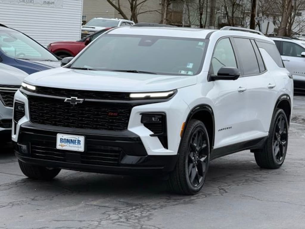 Bonner Chevrolet is proud to present you with another True Market Priced Pre-Owned Vehicle. This 2025 Chevrolet Traverse RS is loaded with the following Factory Options: Traverse RS, 4D Sport Utility, 2.5L DOHC, 8-Speed Automatic, AWD, Iridescent Pearl Tricoat, and Rs Jet Black With Torch Red Accents Leather Preferred Equipment Group 2RS, Traverse RS, 4D Sport Utility, 2.5L DOHC, 8-Speed Automatic, AWD, Iridescent Pearl Tricoat, Rs Jet Black With Torch Red Accents Leather, 12 Speakers, 3rd row seats: split-bench, 4-Wheel Disc Brakes, 6-Way Power Front Passenger Seat Adjuster, 8-Way Power Driver Seat Adjuster, ABS brakes, Air Conditioning, Alloy wheels, AM/FM radio: SiriusXM with 360L, Apple CarPlay/Android Auto, Auto High-beam Headlights, Auto tilt-away steering wheel, Auto-dimming door mirrors, Automatic temperature control, Bose Premium 12-Speaker Audio System Feature, Brake assist, Bumpers: body-color, Child-Seat-Sensing Airbag, Compass, Delay-off headlights, Driver 4-Way Power Lumbar Seat Adjuster, Driver door bin, Driver vanity mirror, Dual front impact airbags, Dual front side impact airbags, Electronic Stability Control, Emergency communication system: OnStar, Exterior Parking Camera Rear, Four wheel independent suspension, Front anti-roll bar, Front Bucket Seats, Front Center Armrest, Front dual zone A/C, Front Passenger 4-Way Power Lumbar Seat Adjuster, Front reading lights, Fully automatic headlights, Garage door transmitter, Heated door mirrors, Heated front seats, Heated rear seats, Heated steering wheel, Illuminated entry, Low tire pressure warning, Memory seat, Navigation System, Occupant sensing airbag, Outside temperature display, Overhead airbag, Overhead console, Panic alarm, Passenger door bin, Passenger vanity mirror, Perforated Leather-Appointed Seat Trim, Power door mirrors, Power driver seat, Power Dual Glass Panoramic Sliding Sunroof, Power Liftgate, Power passenger seat, Power steering, Power windows, Radio data system, Radio: : Audio System w/17.7 Diagonal Display, Rain sensing wipers, Rear air conditioning, Rear anti-roll bar, Rear reading lights, Rear window defroster, Rear window wiper, Remote keyless entry, Security system, SiriusXM with 360L Trial Subscription, Speed control, Speed-sensing steering, Spoiler, Sport steering wheel, Steering wheel memory, Steering wheel mounted audio controls, Tachometer, Telescoping steering wheel, Tilt steering wheel, Traction control, Trip computer, Turn signal indicator mirrors, Variably intermittent wipers, Ventilated front seats, Voltmeter, and Wheels: 22 High Gloss Black Painted Aluminum!!