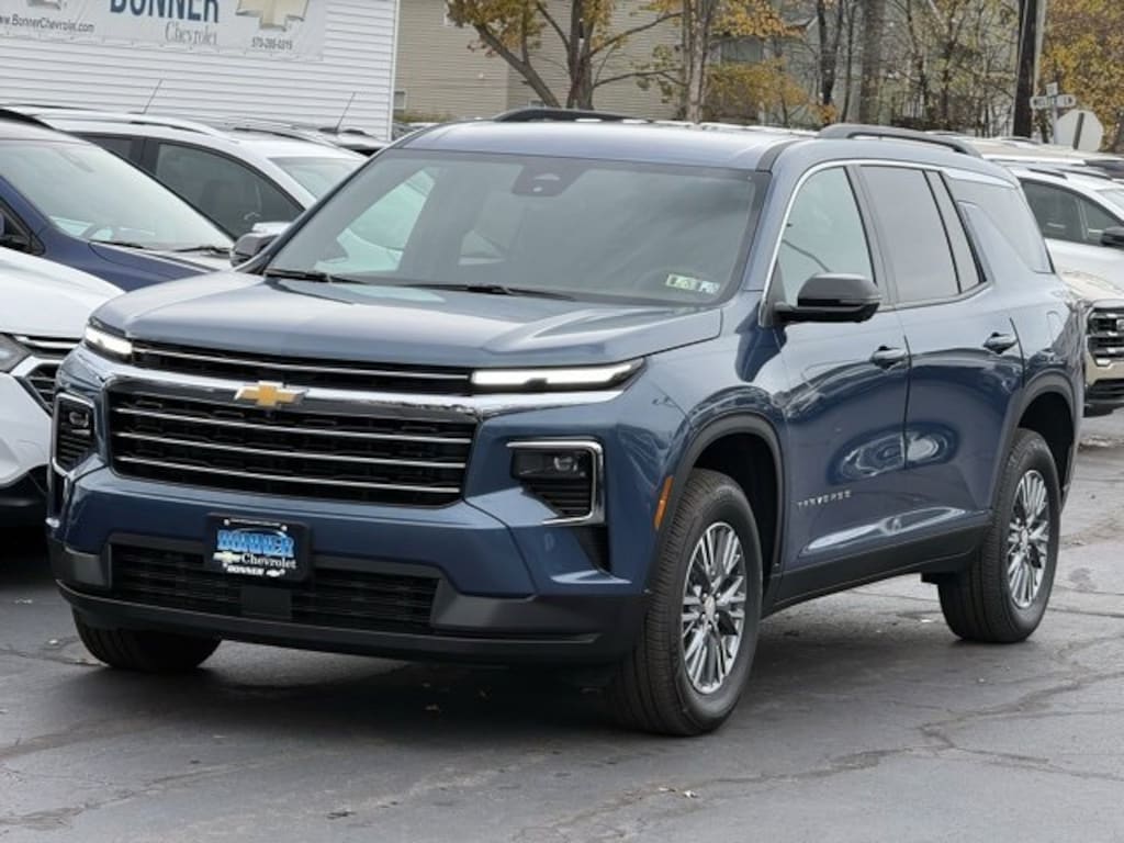 Bonner Chevrolet is proud to present you with another True Market Priced Pre-Owned Vehicle. This 2025 Chevrolet Traverse LT is loaded with the following Factory Options: Traverse LT, 4D Sport Utility, 2.5L DOHC, 8-Speed Automatic, AWD, Lakeshore Blue Metallic, and Jet Black w/Premium Cloth Seat Trim Traverse LT, 4D Sport Utility, 2.5L DOHC, 8-Speed Automatic, AWD, Lakeshore Blue Metallic, Jet Black w/Premium Cloth Seat Trim, 3rd row seats: split-bench, 4-Way Manual Front Passenger Seat Adjuster, 4-Wheel Disc Brakes, 6 Speakers, 6-Speaker Audio System Feature, 8-Way Power Driver Seat Adjuster, ABS brakes, Air Conditioning, Alloy wheels, AM/FM radio: SiriusXM with 360L, Apple CarPlay/Android Auto, Auto High-beam Headlights, Automatic temperature control, Brake assist, Bumpers: body-color, Child-Seat-Sensing Airbag, Compass, Delay-off headlights, Driver door bin, Driver vanity mirror, Dual front impact airbags, Dual front side impact airbags, Electronic Stability Control, Emergency communication system: OnStar, Four wheel independent suspension, Front anti-roll bar, Front Bucket Seats, Front Center Armrest, Front dual zone A/C, Front reading lights, Fully automatic headlights, Heated door mirrors, Heated front seats, Heated steering wheel, Illuminated entry, Low tire pressure warning, Navigation System, Occupant sensing airbag, Outside temperature display, Overhead airbag, Overhead console, Panic alarm, Passenger door bin, Passenger vanity mirror, Power door mirrors, Power driver seat, Power Liftgate, Power steering, Power windows, Premium Cloth Seat Trim, Radio data system, Radio: Audio System w/17.7 Diagonal Display, Rear air conditioning, Rear anti-roll bar, Rear reading lights, Rear window defroster, Rear window wiper, Remote keyless entry, Security system, SiriusXM w/360L Trial Subscription, Speed control, Speed-sensing steering, Spoiler, Steering wheel mounted audio controls, Tachometer, Telescoping steering wheel, Tilt steering wheel, Traction control, Trip computer, Turn signal indicator mirrors, Variably intermittent wipers, Voltmeter, and Wheels: 18 Grazen Metallic Machined-Face Aluminum!!