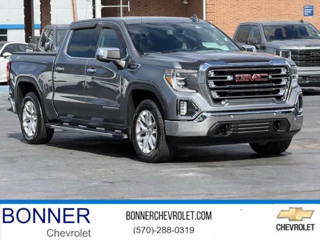 Bonner Chevrolet is proud to present you with another True Market Priced Pre-Owned Vehicle. This 2019 GMC Sierra 1500 SLT is loaded with the following Factory Options: Sierra 1500 SLT, 4D Crew Cab, EcoTec3 5.3L V8, 8-Speed Automatic, 4WD, Satin Steel Metallic, and Jet Black Leather Driver Alert Package I (Lane Change Alert w/Side Blind Zone Alert, Perimeter Lighting, Rear Cross Traffic Alert, and Ultrasonic Front & Rear Park Assist), Driver Alert Package II (Following Distance Indicator, Forward Collision Alert, Front Pedestrian Braking, IntelliBeam Automatic High Beam On/Off, Lane Keep Assist w/Lane Departure Warning, Low Speed Forward Automatic Braking, and Safety Alert Seat), Preferred Equipment Group 4SA (12-Volt Rear Auxiliary Power Outlet, 120-Volt Bed Mounted Power Outlet, 120-Volt Instrument Panel Power Outlet, 170 Amp Alternator, Auxiliary External Transmission Oil Cooler, Chrome Grille, Color-Keyed Carpeting Floor Covering, Compass, Deep-Tinted Glass, Electric Rear-Window Defogger, Electrical Lock Control Steering Column, Front Frame-Mounted Black Recovery Hooks, GMC 4G LTE, GMC Connected Access, HD Radio, Heated Driver & Front Passenger Seating, Heavy-Duty Rear Locking Differential, Hitch Guidance, Hitch Guidance w/Hitch View, In-Vehicle Trailering App, Integrated Trailer Brake Controller, Keyless Open & Start, LED Cargo Area Lighting, Manual Tilt-Wheel & Telescoping Steering Column, OnStar & GMC Connected Services Capable, Power Door Locks, Power Front Passenger Windows w/Express Up/Down, Power Front Windows w/Driver Express Up/Down, Power Rear Windows w/Express Down, Rear Dual USB Charging-Only Ports, Rear Wheelhouse Liners, Remote Vehicle Starter System, Steering Wheel Audio Controls, and Theft Deterrent System (Unauthorized Entry)), SLT Convenience Package (2 USB Ports, 2 USB Ports (1st Row), Floor Mounted Console, Front Bucket Seats, Heated 2nd Row Outboard Seats, Power Sliding Rear Window w/Rear Defogger, Universal Home Remote, and Ventilated Driver & Front Passenger Seats), SLT Preferred Package (Premium Bose 7-Speaker Sound System, Radio: Premium GMC Infotainment Sys w/Navigation, SiriusXM Radio, and Wireless Charging), SLT Premium Plus Package (Chrome Assist Steps, Spray-On Pickup Bed Liner w/GMC Logo, and Trailer Tire Pressure Monitor System), Trailering Package, X31 Off-Road Package (Dual Exhaust w/Premium Tips, High-Capacity Air Filter, Hill Descent Control, Off-Road Suspension, and X31 Hard Badge), Sierra 1500 SLT, 4D Crew Cab, EcoTec3 5.3L V8, 8-Speed Automatic, 4WD, Satin Steel Metallic, Jet Black Leather, 10-Way Power Driver Seat Adjuster w/Lumbar, 10-Way Power Passenger Seat Adjuster w/Lumbar, 20 x 9 Polished Aluminum Wheels, 3.23 Rear Axle Ratio, 4-Wheel Disc Brakes, 6 Speakers, 6-Speaker Audio System Feature, ABS brakes, Air Conditioning, Alloy wheels, AM/FM radio: SiriusXM, Apple CarPlay/Android Auto, Auto-dimming door mirrors, Auto-dimming Rear-View mirror, Automatic temperature control, Brake assist, Bumpers: chrome, Delay-off headlights, Driver door bin, Driver Memory, Driver vanity mirror, Dual front impact airbags, Dual front side impact airbags, Electronic Stability Control, Front 40/20/40 Split-Bench Seat, Front anti-roll bar, Front Center Armrest w/Storage, Front dual zone A/C, Front fog lights, Front reading lights, Front wheel independent suspension, Fully automatic headlights, Heated door mirrors, Heated front seats, Heated steering wheel, Heavy Duty Suspension, Illuminated entry, Low tire pressure warning, Memory seat, Occupant sensing airbag, Outside temperature display, Overhead airbag, Overhead console, Panic alarm, Passenger door bin, Passenger vanity mirror, Perforated Leather-Appointed Seat Trim, Power door mirrors, P